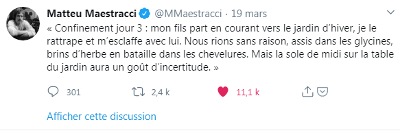 Pour faire un bon journal de confinement bobo, il faut donc s’imaginer quitter Paris en 4×4 polluant pour aller se mettre au vert chez les ploucs le temps que tout ça se tasse et que Paris redevienne la capitale effervescente de la culture et de la débauche. Il faut se prendre pour Phèdre à la fenêtre de sa villa de campagne – fenêtre de laquelle on n’a aucune intention de se jeter – et déclamer sa détresse aux mésanges et aux abeilles sur le ton de Cléopâtre dans Astérix (le dessin animé). Puis il faut prendre sa plume, la tremper dans une bonne dose de culot arrosée d’un rien de mièvrerie, et tracer sur le papier l’indécente complainte d’un·e privilégié·e confiné·e dans plus de 1000 m², racontant le détail le plus insignifiant comme s’il s’agissait d’un pur instant de poésie.
